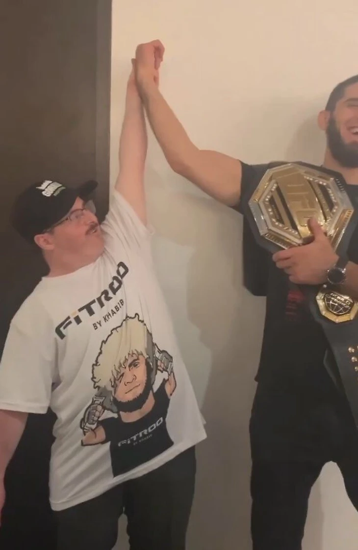 Наибольший буст Раджаб получил в 2022 году – после поездки на UFC 280 в Абу-Даби на бой Ислама Махачева и Чарльза Оливейры, которую организовал Хабиб Нурмагомедов. Раджаб познакомился с ним через родственника Нурмагомедова, который подписан на Шапиева в соцсетях, а потом получал в подарок вещи от UFC.