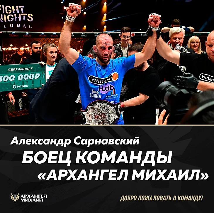 Чемпион AMC Fight Nights в легком весе Александр Сарнавский вошел в состав российского бойцовского клуба «Архангел Михаил». Теперь «Тигр» будет тренироваться в Екатеринбурге на базе Академии единоборств РМК.