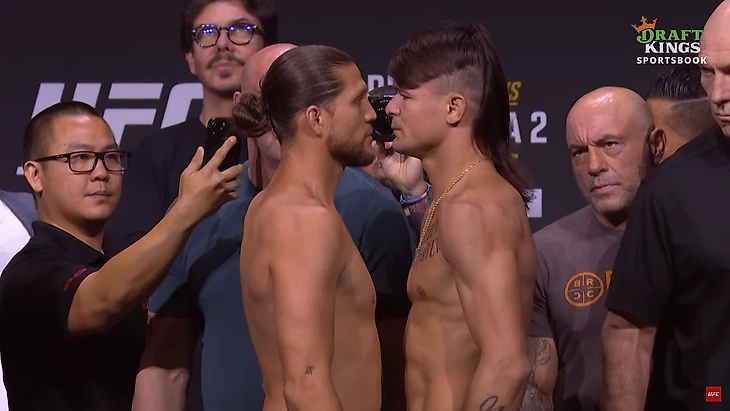 Легкий вес: №3 Брайэн Ортега - №14 Диего Лопес (соглавный бой) Бой перенесли из полулегкого веса. Все по вине Ортеги. Думаю, результат все равно повлияет на ситуацию в рейтинге дивизиона. Это должен быть лучший бой вечера. Оба любят финишировать оппонента. Оба хорошие джитсеры. Лопес вообще идет на серии из 3 побед в 1 раунде. Он и душит, и вырубает. Брайэн тоже традиционно бьется ярко. Нужно смотреть не моргая.