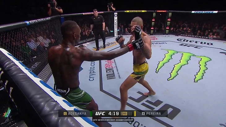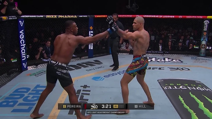 Алекс Перейра – самый разносторонний нокаутер за всю историю UFC. Сложно вспомнить бойца, который мог бы сравниться с вариативностью разрушительных ударов Перейры. У него есть наиболее опасный сценарий: когда оппонент находится спиной к клетке, а Перейра идет вперед с хуками и апперкотами. Именно так он нокаутировал Джамала Хилла и Исраэля Адесанью в первом поединке.