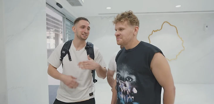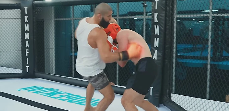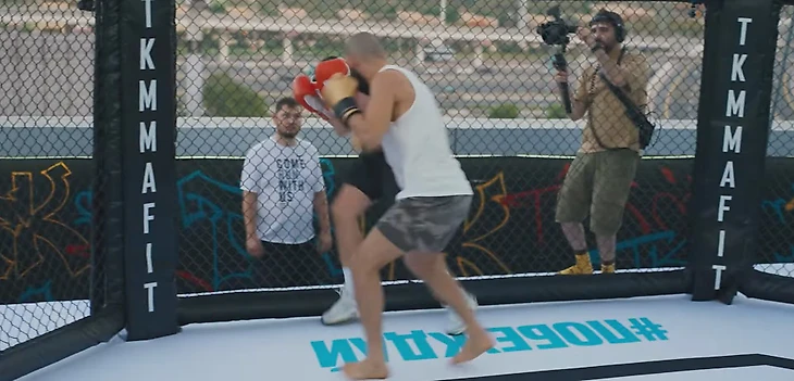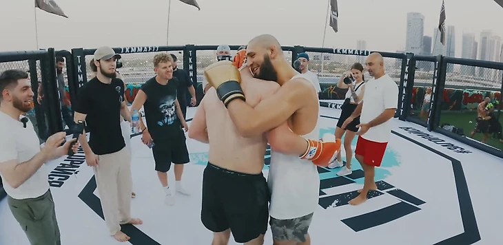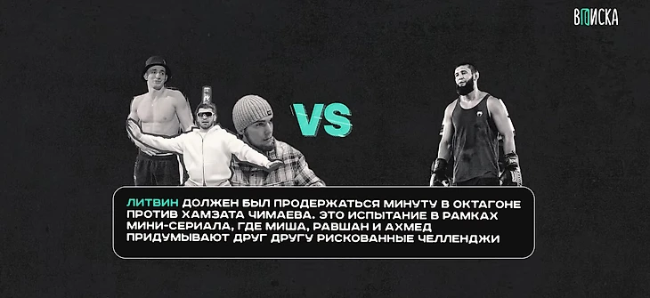 Один из забавных эпизодов (40:54) – схватка с бойцом UFC Хамзатом Чимаевым в Дубае. Даже не схватка: Литвину просто нужно было простоять минуту против профессионала. Вот такой челлендж, который для него придумали друзья.