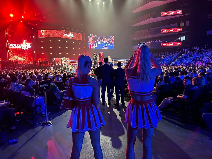 Аудитория на турнире разношерстная: женщины в вечерних платьях, качки, на которых едва сходятся футболки, мажоры в премиум брендах, от которых веет дубайским лоском (некоторые с парой девушек сразу). Были и неожиданные зрители: классические семьи с детьми, худощавые фанаты-ботаники с плохим зрением и даже модные зумеры, которых ждешь на концерте OG Buda, но не на российских ММА.