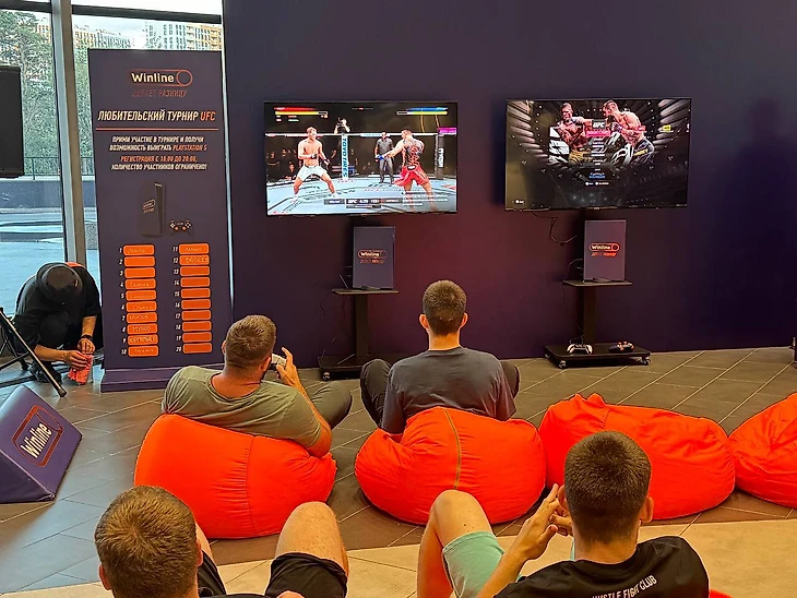 «Русские трибуны» – это ультрас: формат боления идентичен околофутболу до Fan ID. Поэтому перед главным боем арена искрила – пускай и в стиле РПЛ, а не ММА. Хотя многие зрители до последнего толпились в холле: проверяли удар на силомере, стояли в очереди за едой (цены уровня обычных московских ресторанов), играли в UFC на приставке – за Александра Волкова против Тома Аспиналла.