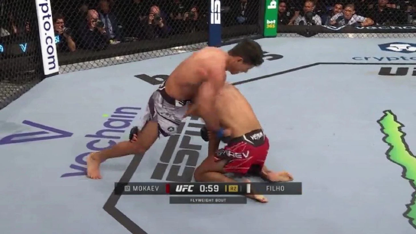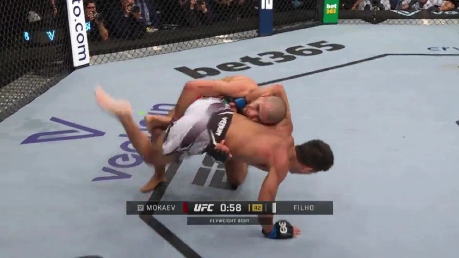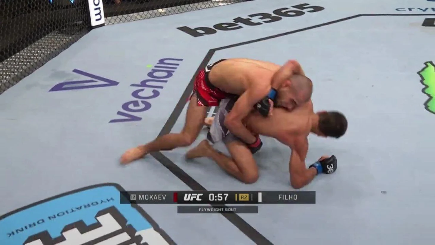 Работа в партере – поле для экспериментов и креативных приемов Мокаева. За его небольшую карьеру в ММА уже набралось приличное количество моментов, в которых он финиширует соперников или спасается из тяжелых ситуаций в партере благодаря изобретательности.