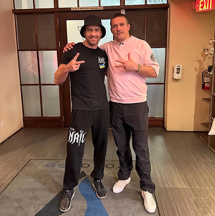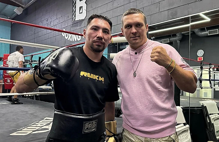 Усик посетил зал Brickhouse Boxing Club, где тренируется клиент его менеджера Эгиса Климаса, – чемпион мира в среднем весе Жанибек Алимханулы. Он присутствовал на спаррингах и подсказывал в перерывах между раундами.