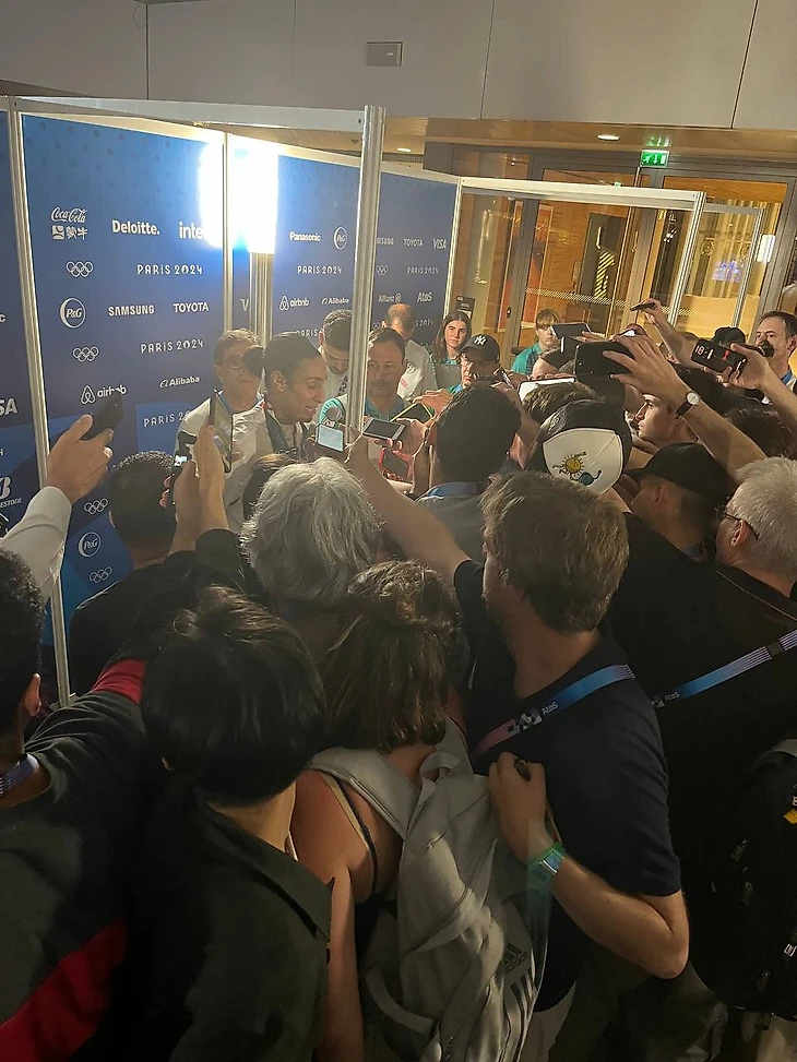 Но в миксте захотелось закрыть глаза. Такой давки не было даже на Леброне после полуфинала баскета. Время – первый час ночи. Все журналисты уже дико уставшие. И ждать героиню нужно было еще минут 10-15. А народ только прибывал.