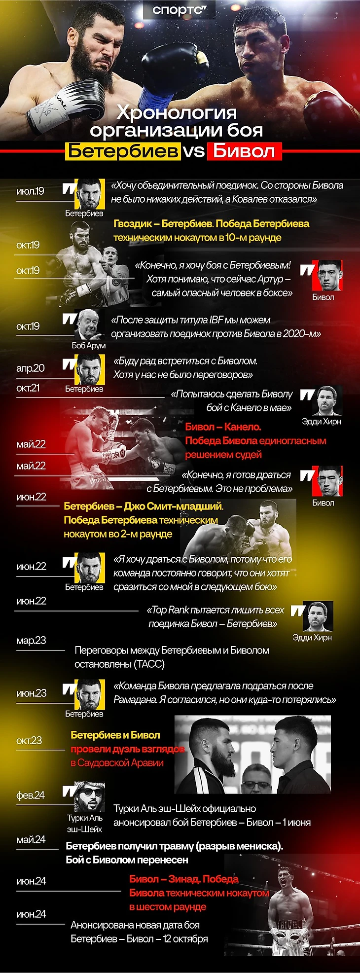 Вся история организации боя Бетербиева и Бивола – в одной картинке