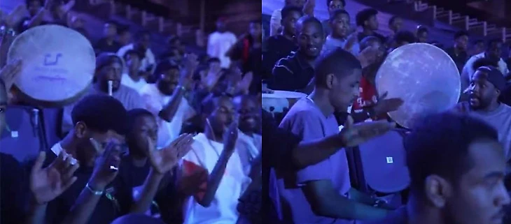 Бен Уитейкер и Лиам Кэмерон в конце пятого раунда сцепились в клинче и перевалились за канаты.