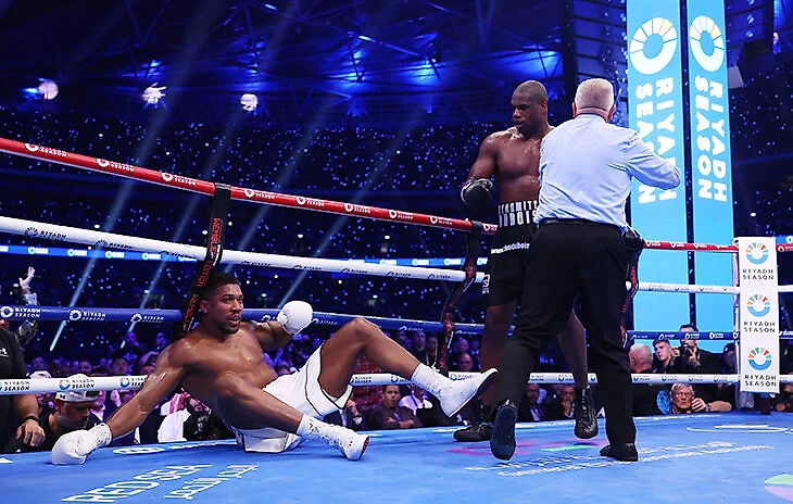 Во втором раунде избиение продолжилось: Дюбуа почувствовал уязвимость соперника и охотился за нокаутом. И донес точный левый боковой в третьем раунде – снова на последних секундах. Джошуа выживал у канатов, но пропустил град ударов, из-за чего чуть не выпал с ринга.