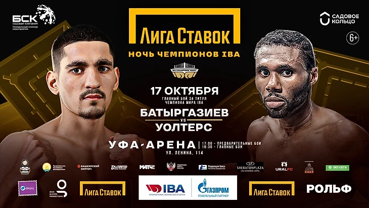 Олимпийский чемпион-2020, временный чемпион WBA россиянин Альберт Батыргазиев (11-0, КО 8) 17 октября в Уфе проведёт защиту пояса чемпиона IBA в весе до 60 кг против бывшего суперчемпиона WBA Николаса Уолтерса (29-1-1, КО 22) из Ямайки. Этот 10-раундовый поединок возглавит турнир «Лига Ставок. Ночь чемпионов IBA», который пройдёт в рамках форума «Россия – спортивная держава».