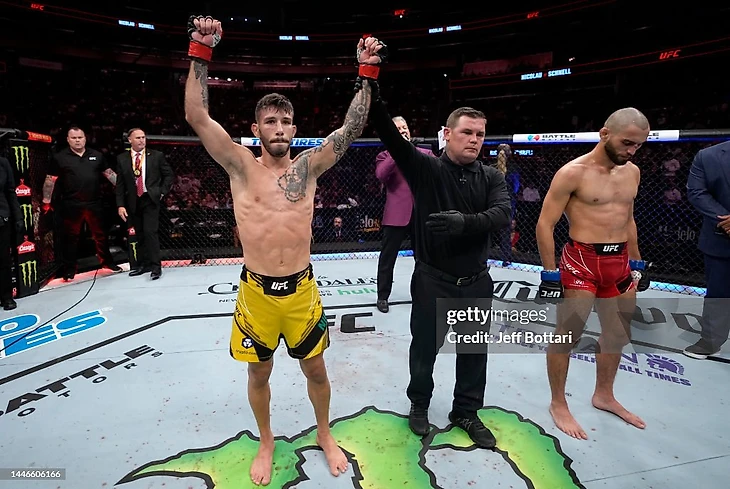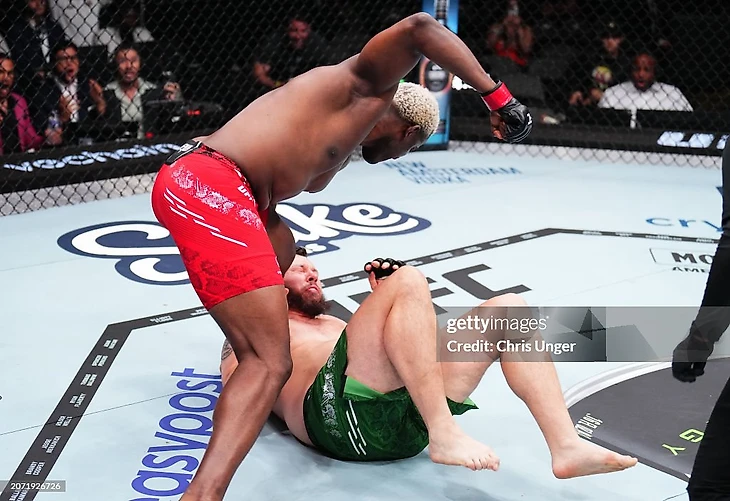 В следующих четырёх боях нашему герою для победы понадобилось 12, 3, 4 и 18 секунд. Ещё раз, человек потратил суммарно 37 секунд на четыре победы нокаутом! Соперники просто не успевали инициировать борьбу или клинч и падали после первых попаданий. Последняя из этих побед была одержана уже в UFC, хоть и над не самым серьёзным бойцом, Джошем Парисяном