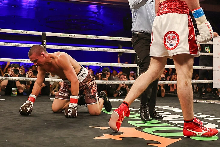 Тиму Цзю очень тяжело. Два подряд поражения сильно подорвали его позиции и оборвали крепкий рекорд (24-0). Сначала Цзю не справился с высоченным Себастьяном Фундорой, а потом за восемь минут четырежды упал в нокдаун от Бахрама Муртазалиева, что угол выбросил полотенце.