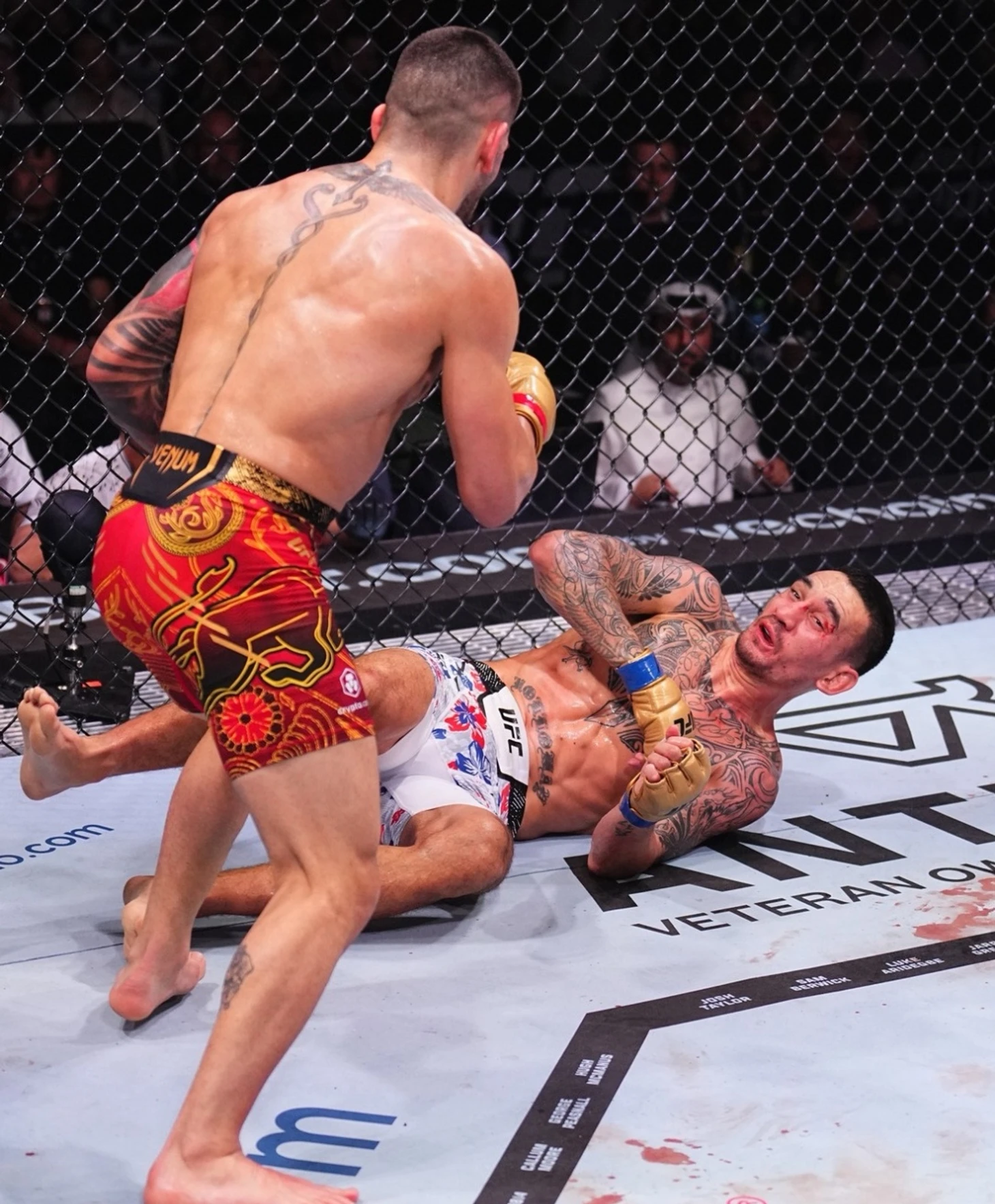 Испано-грузинский атлет нокаутировал самого Макса Холлоуэя и сохранил чемпионский титул в полулёгком весе [до 65,8 кг]. Поражает уверенность Топурии. Пока он демонстрирует очень редкое качество - много и броско говорит перед боями, а позже в октагоне на деле подтверждает свою состоятельность. Илия вырубил Макса, чем до этого не могли похвастать с десяток абсолютно топовых бывших соперников Холлоуэя. От Топурии в бою с Максом буквально в каждом размене веяло опасностью. Что особенно ценно, испанец не отходил от своего плана даже после неудачных эпизодов, а ведь он дрался в стойке с тем, кого многие считали лучшим боксёром в UFC.