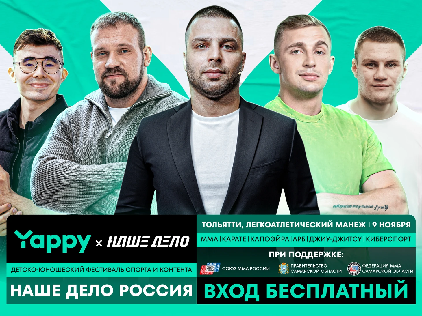 Организация «Наше Дело» при поддержке Союза ММА России и администрации города Тольятти совместно с приложением вертикальных видео Yappy проведет 9 ноября всероссийский детско-юношеский фестиваль спорта и контента «Наше Дело Россия».