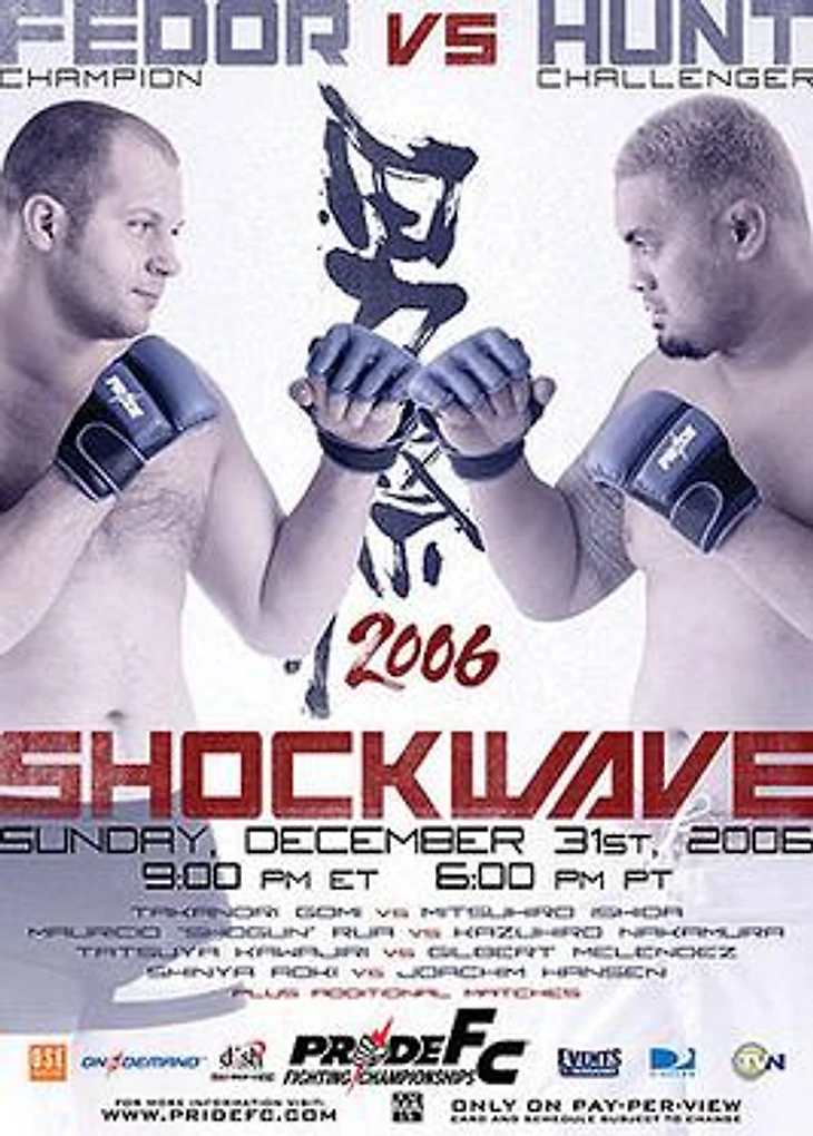 В последний день 2006-го года прошел традиционный новогодний турнир Pride Shockwave, собравший под свои знамена главных звезд организации. Федор Емельяненко провел свой последний бой в Pride, одолев Марка Ханта. Антонио Родриго Ногейра победил Джоша Барнетта. Таканори Гоми нокаутировал Мицухиро Ишиду. Гилберт Мелендес одолел Тацую Каваджири.