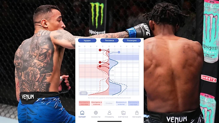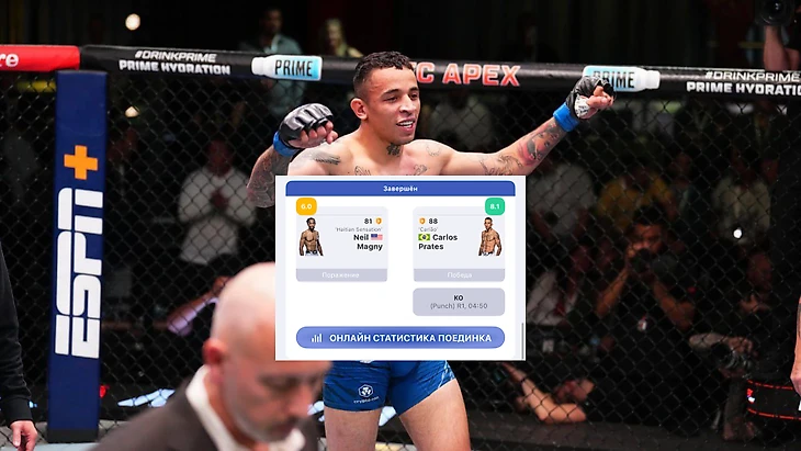 Пратес продемонстрировал классный перформанс, выбросив 19 ударов с точностью 68% и совершив один успешный тейкдаун, защитившись при этом от пяти проходов соперника. Алгоритм Stats Fight Performance наделил Карлоса рейтингом 8.1 по итогам поединка. Что касается Мэгни, то он не смог реализовать план на бой. Да, Нил нанес 16 из 27 точных ударов, но побороть бразильца у него так и не получилось. Как итог – низкая оценка 6.0 для Мэгни.