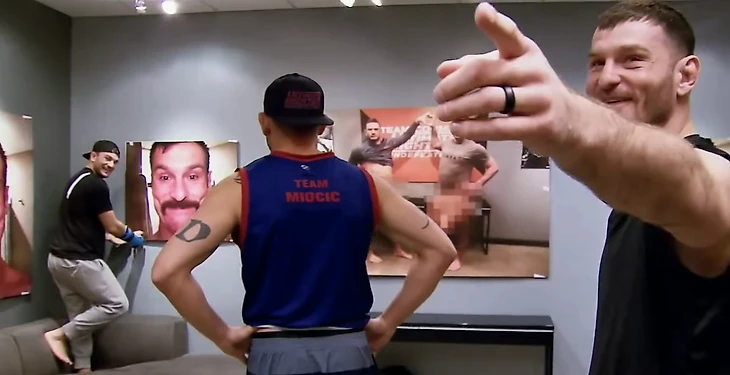 Миочич построил мужское счастье: у него любящая жена, двое детей, статусная работа пожарного. Но он сохранил в душе ребенка – про его глупые пранки в UFC ходят легенды. Он разыгрывает родных, коллег по пожарной части, других бойцов. В TUF он пошутил над командой Кормье: заменил в раздевалке все фото на свое селфи с усами. Но главным стал его снимок без трусов: