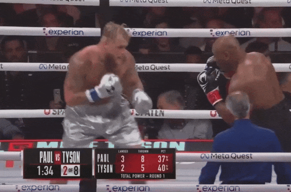 Тайсон вышел на бой с узнаваемым геймпланом – атака с высоким прессингом с первых секунд. Но смутило, что Тайсон ни разу не достал Пола, хотя соперник уходил с опущенными руками и открытой головой.