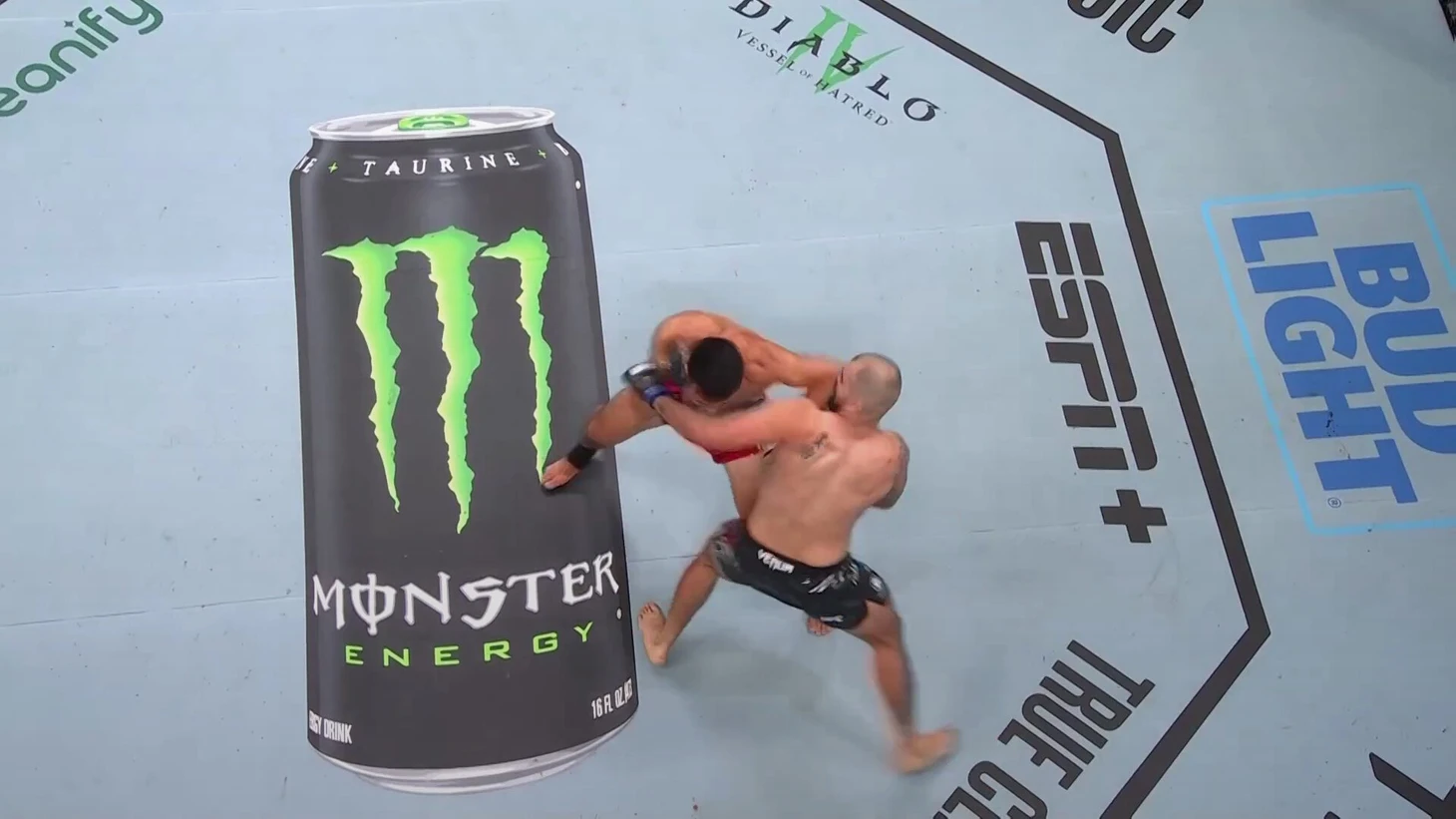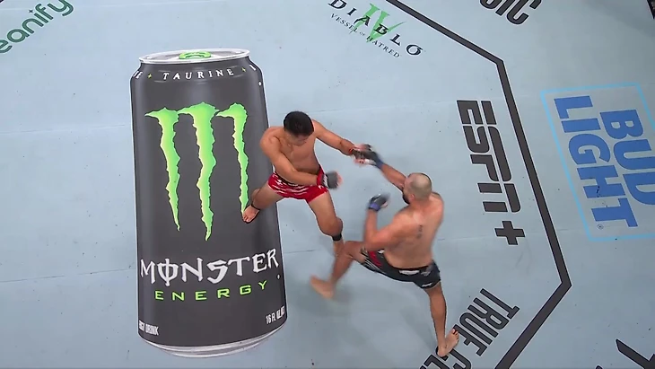 Крепкий Мингианг сразу занял позицию в центре октагона. Оззи Диаз совсем не выглядел испуганным и не стеснялся отвечать. Бойцы постоянно пересекались, пробивая джебы, а спустя несколько таких взаимных ударов Мингианг немного изменил стратегию. Он показал, что будет бить джеб, но вместо этого переключился на локоть. Получилось отлично.