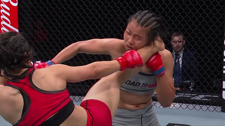 Но в итоге поединок оказался намного более конкурентным. В первом раунде Мин перевела соперницу на канвас, но Ксяокан сделала реверс и оказалась в маунте. Во второй пятиминутке миниатюрные девушки перестреливались акцентированными, но не очень сильными ударами. Казалось, поединок идет к решению.