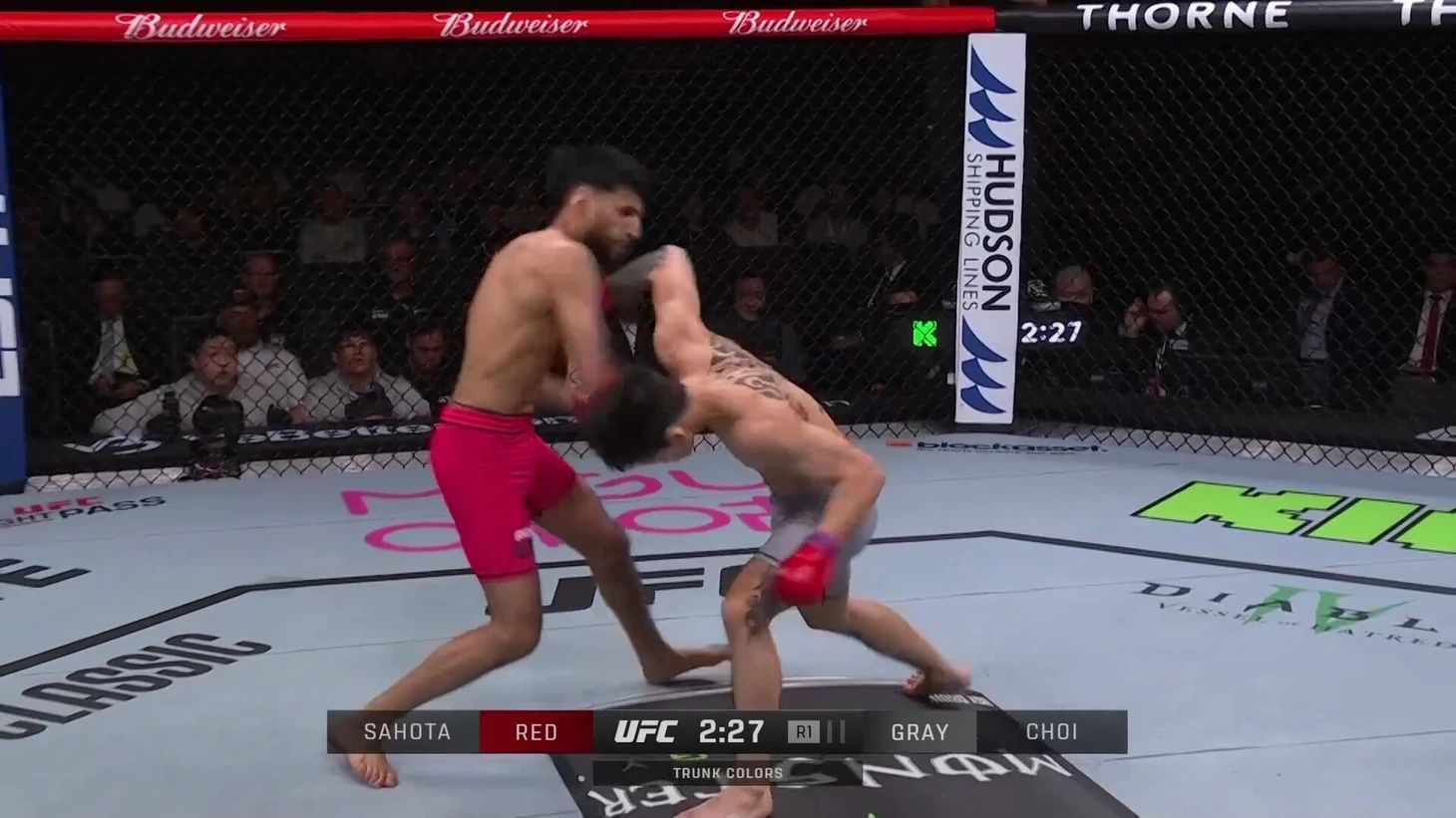 Сахота начал более активно. Он выбрасывал большое количество разнообразных ударов и финтов, а Чой достаточно спокойно двигался по октагону, не реагируя на движение соперника. Ближе к середине раунда он прорвался на ближнюю дистанцию и нанес несколько плотных ударов. Спустя три минуты после начала раунда Чой снова ворвался на ближнюю дистанцию и пробил трехударную комбинацию: