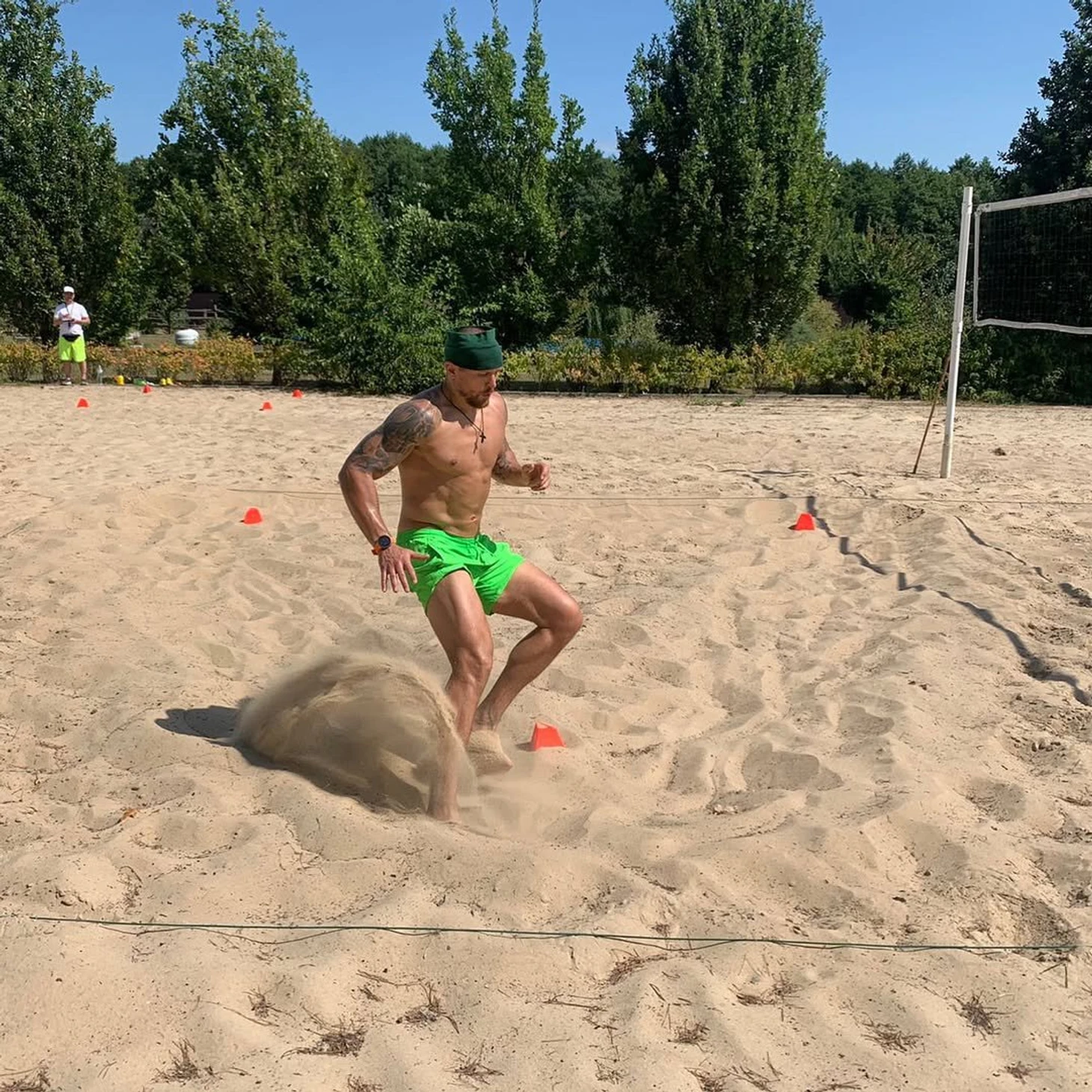 Усик тренируется на пляже, где устраивает спринты; жонглирует на мяче для йоги; восстанавливается в ледяной воде; подбрасывает и ловит монеты, чтобы улучшить координацию и реакцию; выполняет упражнения на психику и работает с таблицей Шульте [таблица со случайно расположенными объектами, проверяющая быстроту нахождения этих объектов в определенном порядке], которая развивает внимание и периферическое зрение.