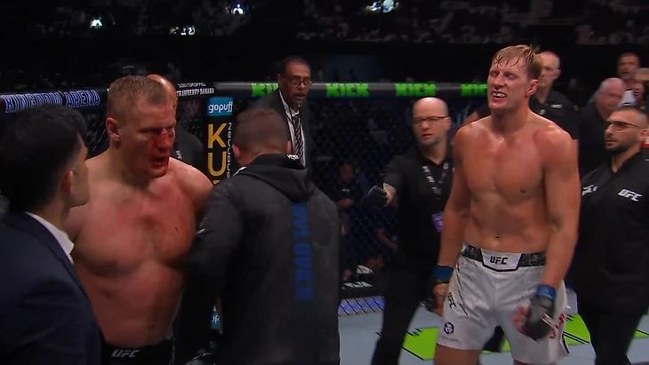 «Еще в предыдущем бою Харриса от Сашиного джеба левой начинало болтать, – восхищался менеджер Волкова Иван Банников. – Соперники уже не просто пятятся от боли, а их болтает в состоянии грогги. Это уже другой уровень мощи. Посмотрите – Алистар пытался его перевести несколько раз, пытался входить в клинч, но у него ничего не получилось. Все из-за разницы в силе».