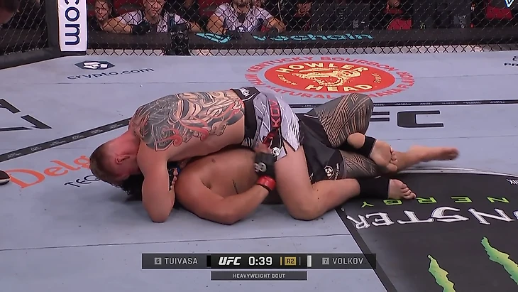 В-третьих, Волков показывает результат в борьбе. Долго считалось, что его легко залежать, но теперь это не так. Он не только научился защищаться от тейкдаунов, но и сам лезет в партер. Романова забил на канвасе, а Туивасу и вовсе задушил.