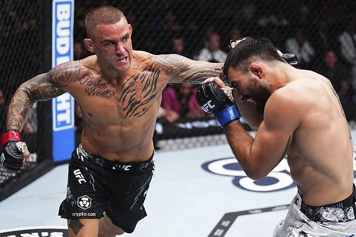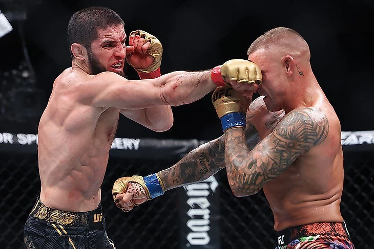 На четвертой строчке топа располагается бой между чемпионом легкой весовой категории Исламом Махачевым из России и американцем Дастином Порье. Они подрались 2 июня в Ньюарке на турнире UFC 302.