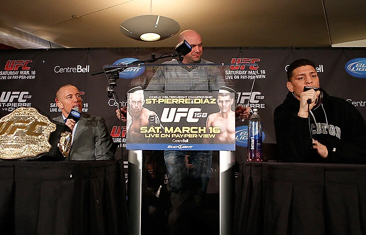 Поединок против Сен-Пьера – пик популярности Ника Диаза. Дана Уайт начал раскручивать этот бой сразу после победы Диаза над Пенном: «Вы не поверите, но Сен-Пьер сегодня вышел из себя. Он сказал: «Это самый неуважительный человек из тех, кого я встречал. Изобью его так сильно, как еще никто не избивал». Правда, позже Сен-Пьер признался, что никогда такого не говорил – Дана как обычно приукрасил.