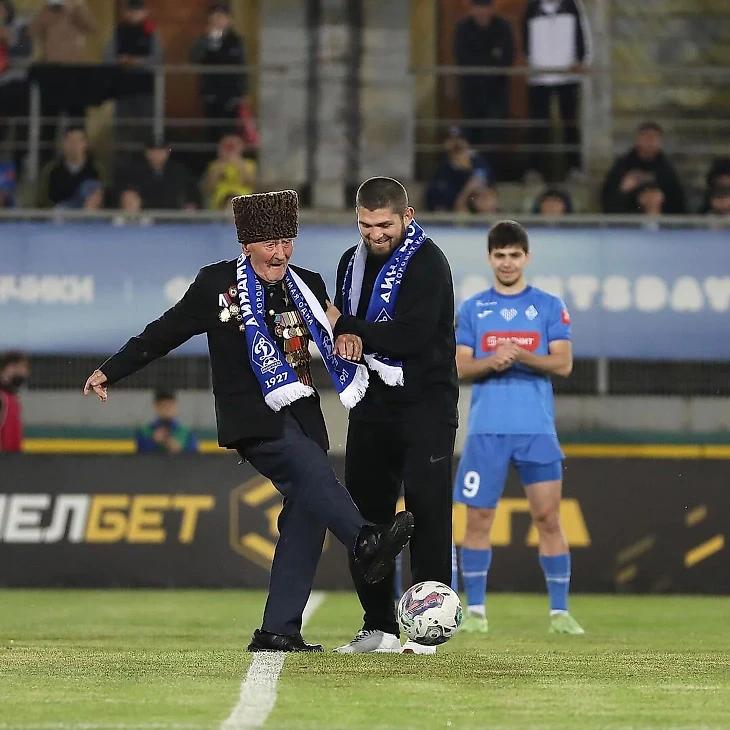 Ходил на матч ФНЛ между махачкалинским «Динамо» и «Химками», где помог 100-летнему ветерану нанести символический удар по мячу: