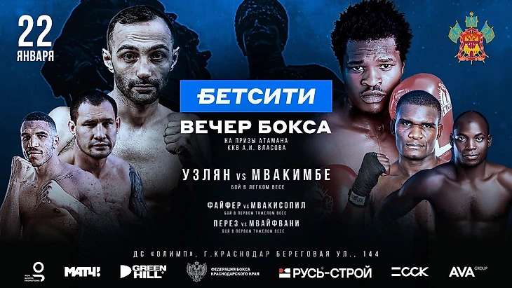 Российские боксёры Тигран Узлян и Руслан Файфер проведут свои очередные поединки 22 января в Краснодаре в рамках международного турнира «БЕТСИТИ Вечер профессионального бокса», организованного Iron&Gloves Promotions при поддержке Федерации бокса России и Федерации бокса Краснодарского края.