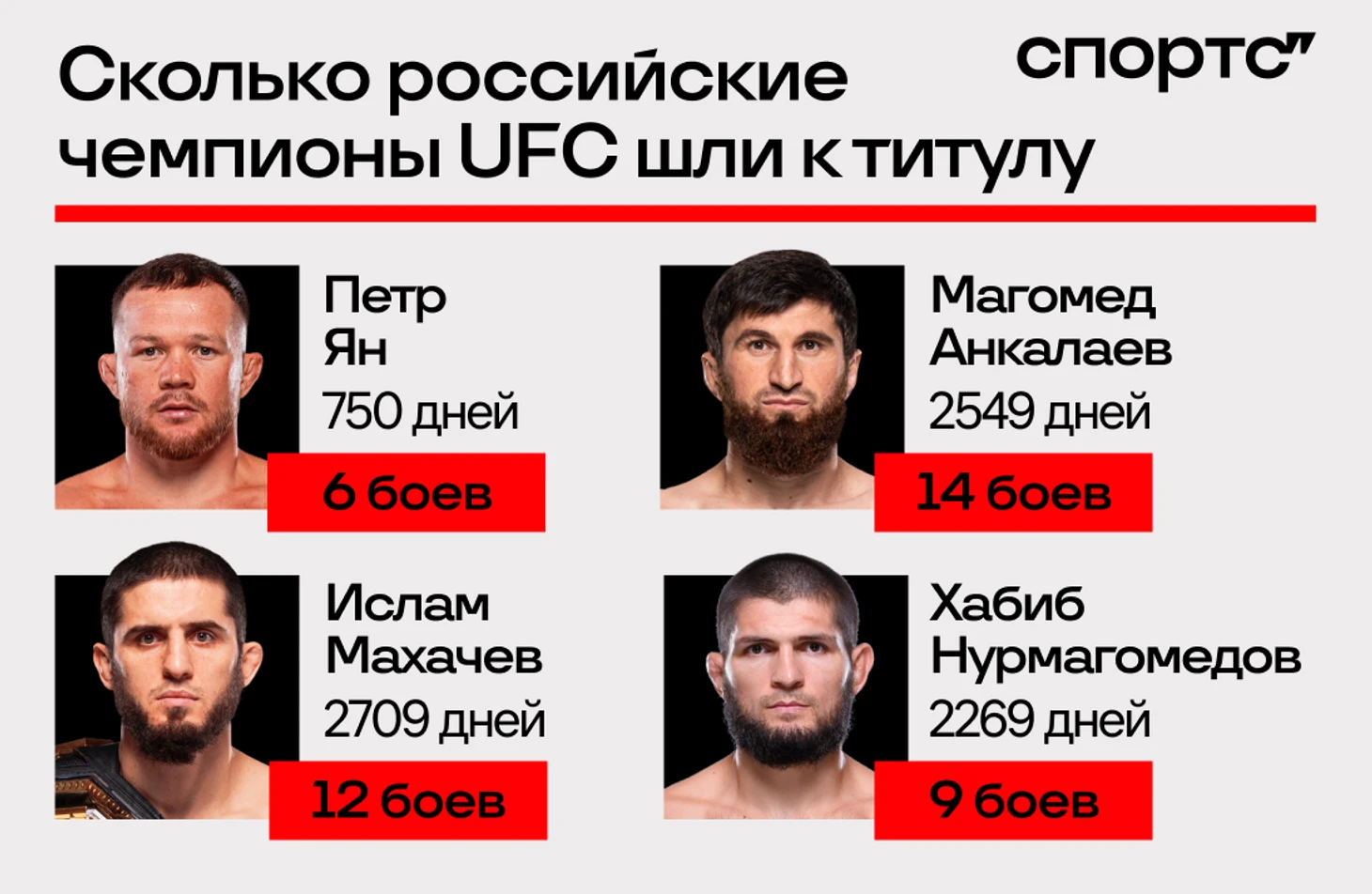 Анкалаев – пятый чемпион UFC из России. Шел к титулу дольше всех