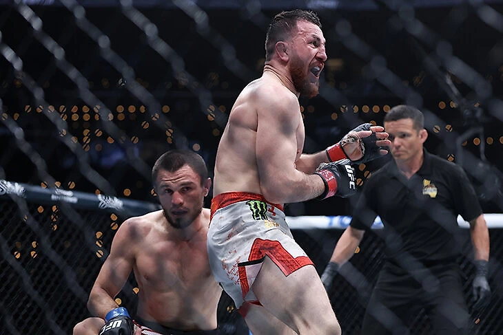 Мераб Двалишвили – теперь это очевидно – очень хорош в переводах и давлении. Он настолько в этом прокачался, что почти не устает, когда давит и переводит. Как марафонец, который набегал тысячи километров. А еще Мераб в конкретном поединке с Умаром умно распределил силы и включился со второй половины.