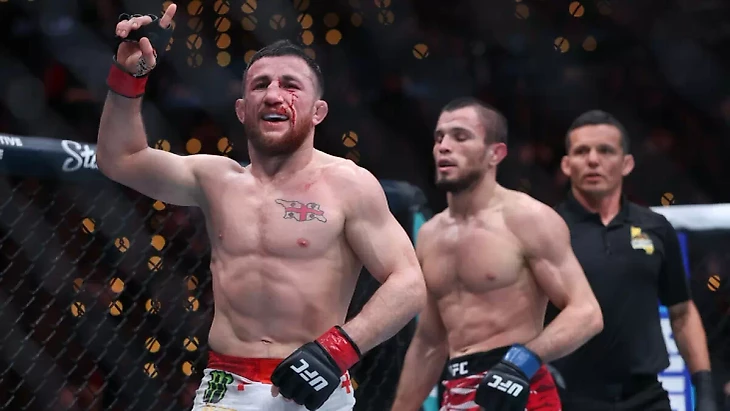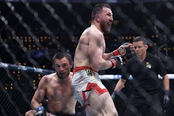 В ночь с 18 на 19 января в Калифорнии на новенькой арене Intuit Dome. Несмотря на бушующие в Южной Калифорнии лесные пожары, турнир переносить не стали и провели в соответствии с расписанием. Однако беда подкралась, откуда не ждали. Один из «хедлайнеров» турнира, претендент на пояс в легком весе Арман Царукян снялся с боя во время взвешивания. Официальная причина: травма спины, которая обострилась из-за весогонки. Но ходят слухи, что Арман просто не мог согнать вес. И, судя по недовольству Даны Уайта, заявившего, что Царукян потерял вой титульный шанс, это недалеко от истины.