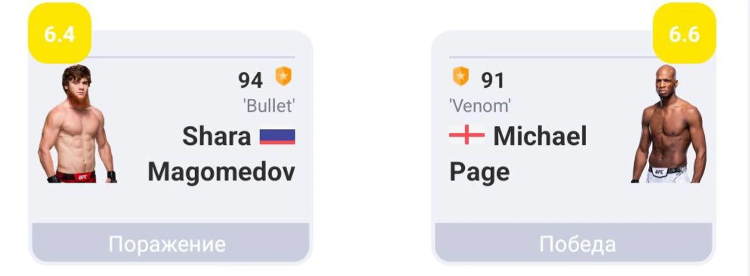Алгоритм Stats Fight наделил Шару Буллета оценкой 6.4 за выступление в поединке с Веномом. Майкл Пейдж, в свою очередь, получил рейтинг 6.6 – это говорит о том, что британец эффективнее применял свой технический арсенал в минувшем бою.