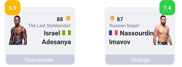 Нассурдин Имавов заслужил похвалы за камбэк в минувшем бою. Алгоритм Stats Fight Performance оценил выступление французского средневеса высокой оценкой 7.4. Исраэль Адесанья, в свою очередь, удостоился рейтинга 5.9.