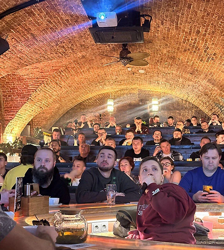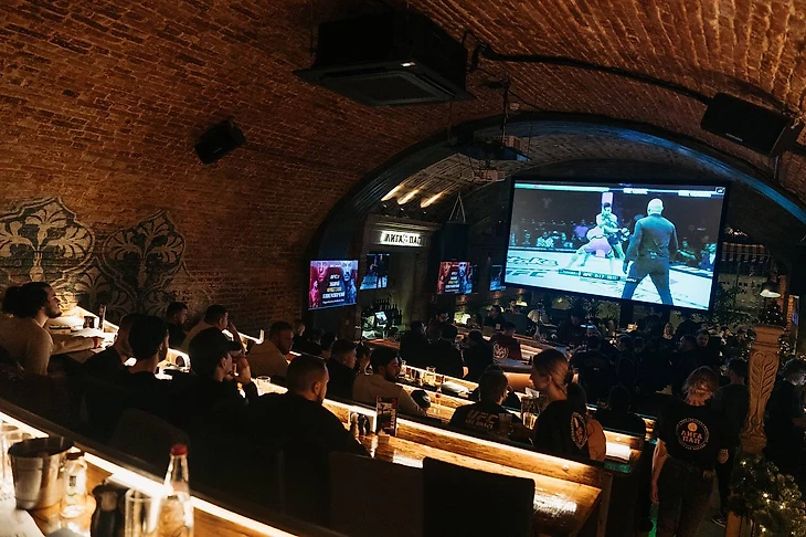 Турнир UFC в Саудовской Аравии мне предложили комментировать из бара в центре Москвы. Изображение на экране, как в кинотеатре, люди за столиками и на местах, как в лекционном зале, а ты должен рассказывать, что сейчас происходит на Kingdom Arena в Эр-Рияде.