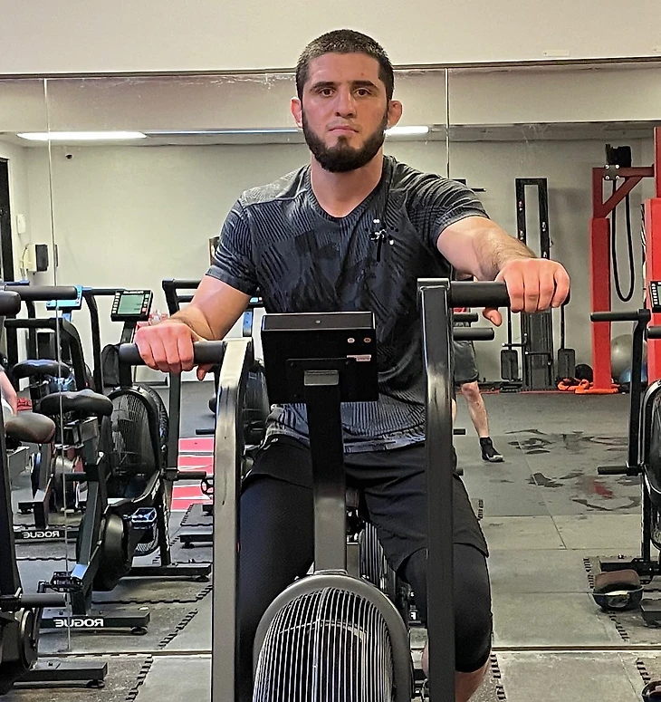Садишься на аэробайк (Хабиб и Ислам Махачев используют его тоже) – типа велотренажера, только с упорами для рук – и минуту крутишь, выдерживая каденс (частоту вращения по датчикам тренажера) 60-62. Отдыхаешь минуту и повышаешь уровень до 62-64, потом – 64-66. Я дошел до 68. Попробовал сделать 68-70, но после 30 секунд ноги сами замедлились. Появилась одышка и по-простому усталость.