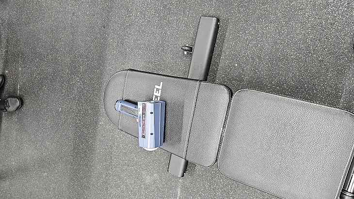 Выглядит потрясающе: ложишься на спину на скамейку, упираешься одной рукой в рукоять, а другой – выжимаешь изо всех сил ручку на текстильных стропах. Ручка цепляется за карабин на специальном устройстве, которое закреплено под тобой – чуть ниже локтя, на стойке для жима.