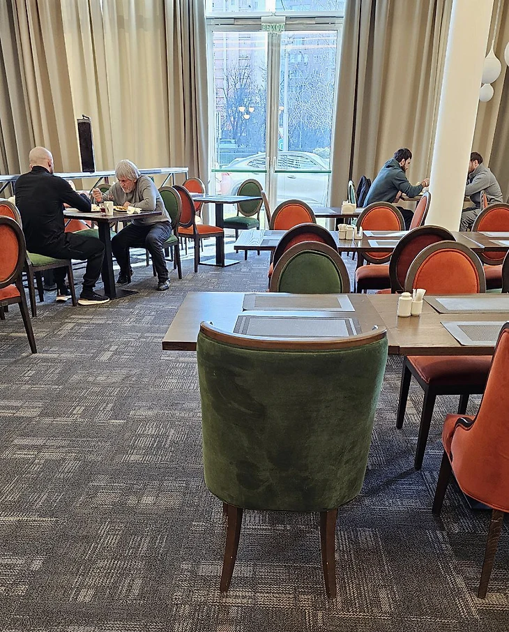 Например, в день турнира обед длился до 15:30. В 15:00 в пустом зале ресторана было занято только два стола. За одним сидел чемпион Альберт Туменов с отцом. За другим – претендент Абубакар Вагаев с секундантом. Через несколько часов они встретились в клетке.