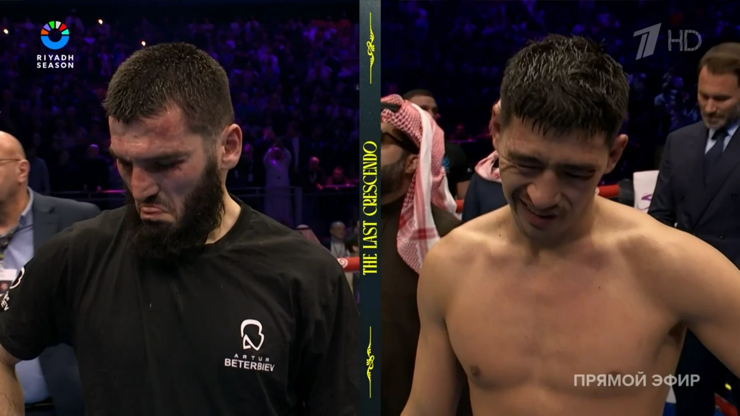 В итоге Бивол победил, но лишь решением большинства судей: 114-114, 116-112, 115-113. Когда боксеры услышали ничейный счет, отреагировали по-разному: Бетербиев показал язык, а Бивол разочарованно выдохнул.