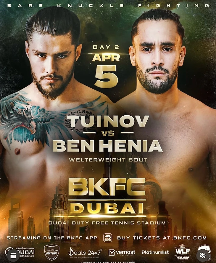 Поединок состоится 5 апреля в рамках турнира Bare Knuckle Fighting Championship в Дубае (ОАЭ).