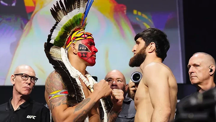 Магомед Анкалаев забрал титул у Алекса Перейры. В не самом с точки зрения зрителя зрелищном бою Магомед был лучше соперника и заслуженно стал чемпионом.