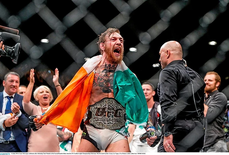Ну, а в главном событии состоялась коронация Конора МакГрегора. Ирландец должен был драться с Алдо, но из-за травмы последнего ему пришлось иметь дело с Чадом Мендесом. Впрочем, это не помешало ему выиграть нокаутом и забрать титул временного чемпиона. Я был пленен харизмой Конора и надолго стал его фанатом.