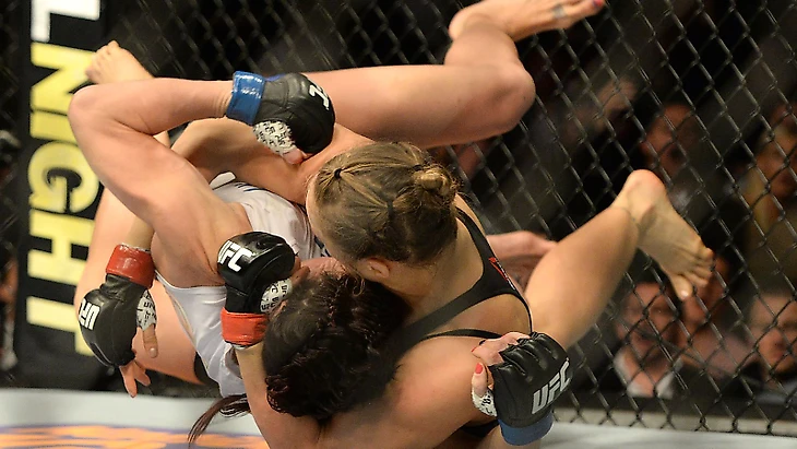 28 февраля состоялся UFC 184. Этот турнир представлял большой интерес хотя бы потому, что на нем выступила Ронда Раузи. противостояла ей Кэт Зингано, которую считали чуть ли не единственной девушкой, способной победить Ронду. Зингано и сама в это уверовала. Реальность оказалась к ней жестока. Полетев с первых секунд вперед, Зингано попалась на армбар и была вынуждена постучать уже на 14 секунде боя. С этого момента ее карьера пошла на спад, а популярность Раузи, напротив, взлетела до небес.