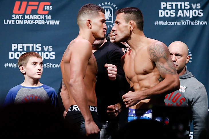 Март стартовал с номерного турнира UFC 185. В ранних прелимах подрались будущие звезды женских ММА Жермен де Рандеми, ставшая впоследствии первой чемпионской в полулегком весе, и Лариса Пачеко, оборвавшая победную серию Кайлы Харрисон в UFC. В прелимах Джаред рошол нокауутировал Джоша Коупленда, Бенеил Дариуш задушил Дарона Крукшенка, а Росс Пирсон нокаутировал Сэма Стаута. Основной кард украшала целая россыпь звучных имен. Генри Сехудо решением победил экс-претендента на титул в наилегчайшем весе Криса Кариосо, Аллистар Оверим одолел Роя Нельсона, а Джонни Хендрикс – Мэтта Брауна. В со-главном событии Карла Эспарза не смогла защитить титул чемпионки в весе «соломинок», уступив Йоанне Енджейчик. А в главном поединке Рафаэль дос Аньос пустил под откос набиравшую обороты карьеру Энтони Петтиса, завоевав пояс чемпиона в легком весе.
