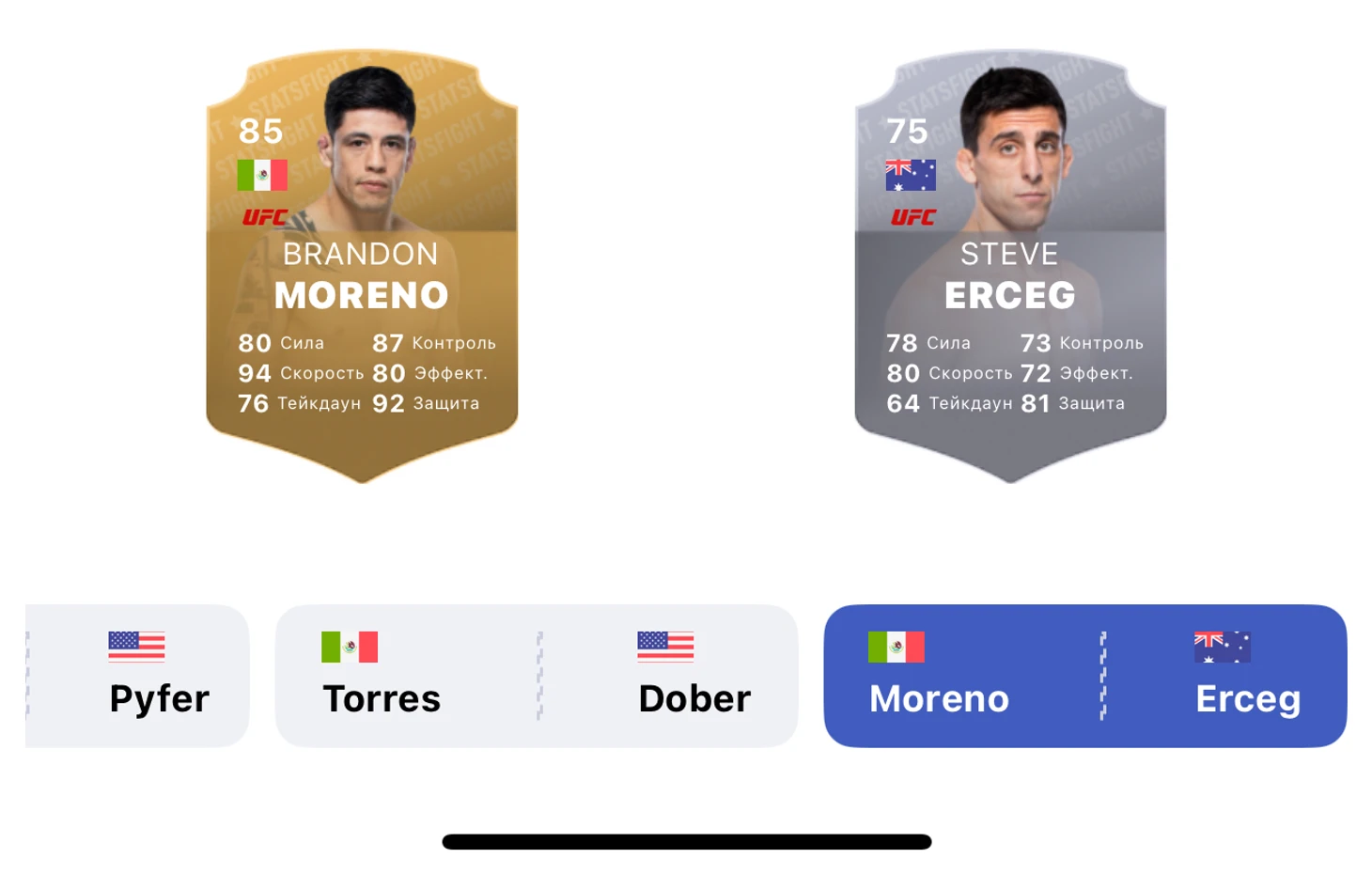 Рейтинг Морено и Эрцега от Stats Fight: чей выше?