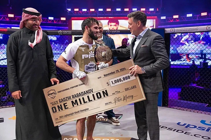 Стоит признать, что 2024-й год стал для Рабаданова прорывным: он выиграл два боя решением судей на групповом этапе, а затем одержал две виктории нокаутом в плей-офф, включая победу над Брентом Примусом в финале, что принесло ему звания чемпиона Гран-при PFL в легком весе и миллион долларов.