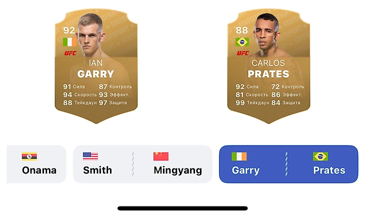 По данным Stats Fight Rating, ирландец Иэн Мачадо Гэрри имеет оценку 92, тогда как его соперник Карлос Пратес — 88. Цифры близкие, но аналитика говорит о небольшом преимуществе Гэрри — и мнение подписчиков показала то же самое 👌🏻